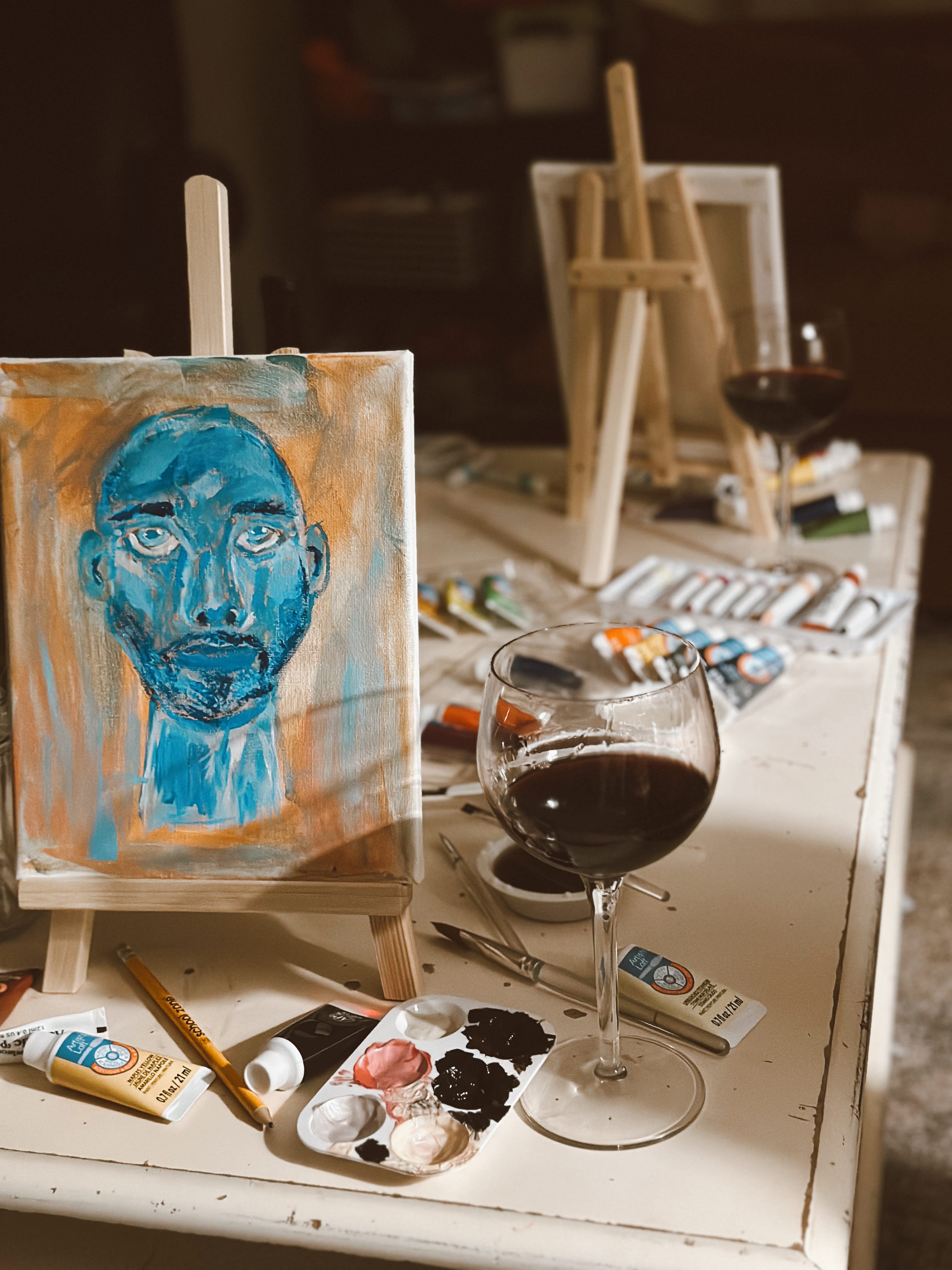 Last night, Zach and I celebrated our 17th engagement anniversary but painting portraits of each other. It’s a trend on tiktok and in most of the videos, at least one person in the couple does a hilariously horrible job capturing their lover’s likeness on canvas. I thought for sure it would be me who would fail and I was all in to make that sacrifice. Ha! I’ve never drawn anything other than stick figures and doodle flowers. I’ve never painted anything (other than a paint-by-number I never finished.) I’ve never even tried to copy someone’s painting. I’m just not creative in that way and never have been.